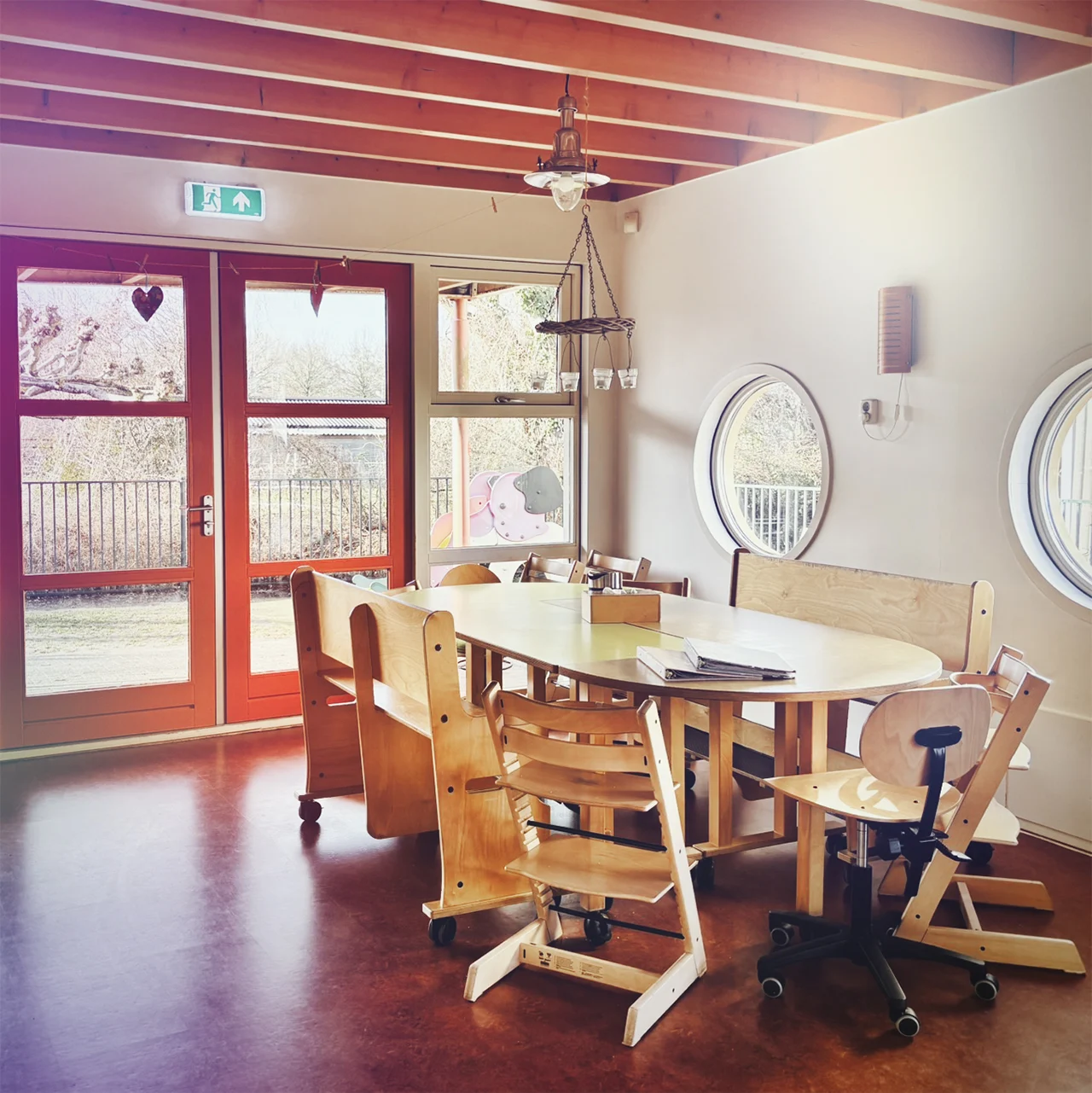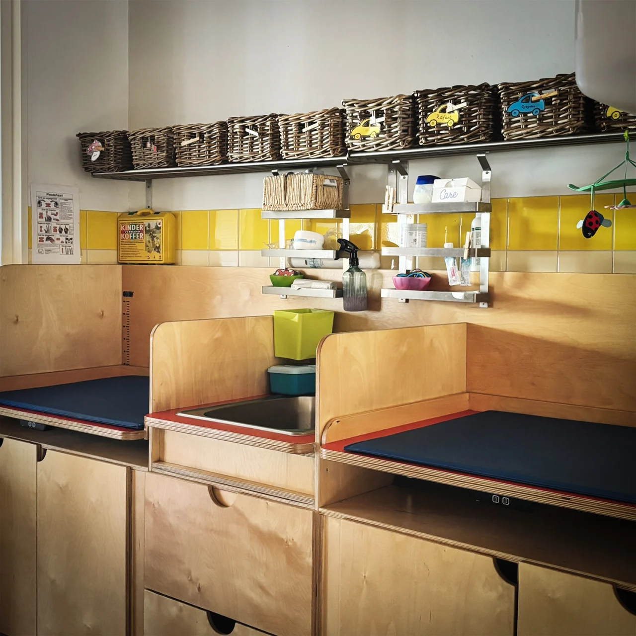 De pedagogisch medewerker heeft de groepsruimte netjes achtergelaten voor de volgende dag.